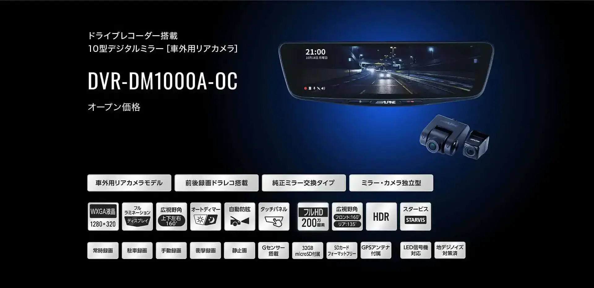 アルパイン DVR-DM1000A-OC 67,800円(税別)から※取付には別途金具が必要です。アルパイン公式HPはこちら